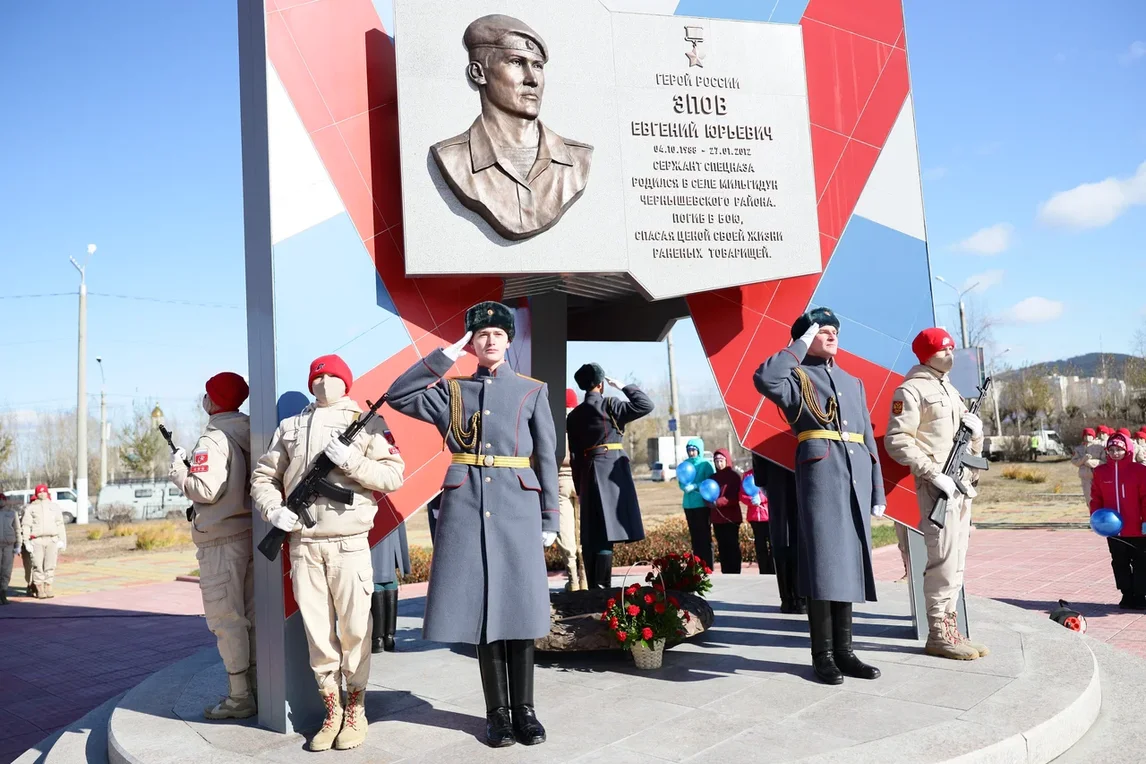 В Чите сегодня торжественно открыли памятник Героям России – трем забайкальским воинам, которые отдали свои жизни ради спасения товарищей.