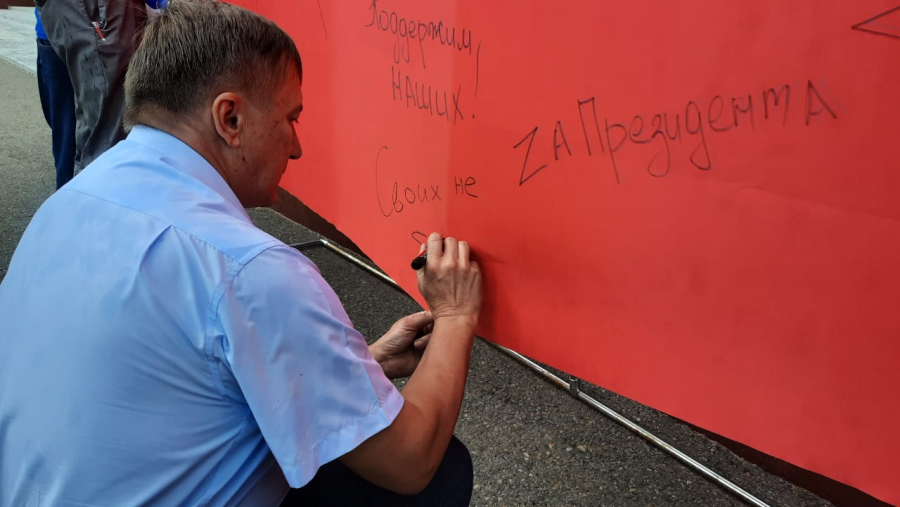 Краевой этап акции состоялся на мемориале трудовой и боевой славы забайкальцев. Участие в нем приняли представители "Единой России ", сторонники партии и волонтеры. На фрагменте флага они написали свои пожелания, патриотические надписи и вдохновляющие слова.